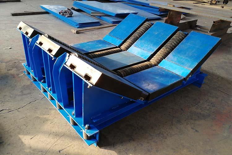 皮帶機緩沖床主要用于皮帶機導(dǎo)料槽下方的落料口處,當(dāng)物料下落時,緩沖床利用自身彈性對物料下落到皮帶上的沖擊力進行處理,使沖擊力達到很小,以保證皮帶機正常運行。皮帶機緩沖床的表層緩沖條擁有五百萬分子量的高分子聚乙烯板面,該高板于皮帶呈面面接觸,使?jié)櫥赃_到很高,摩擦系數(shù)降至很低。